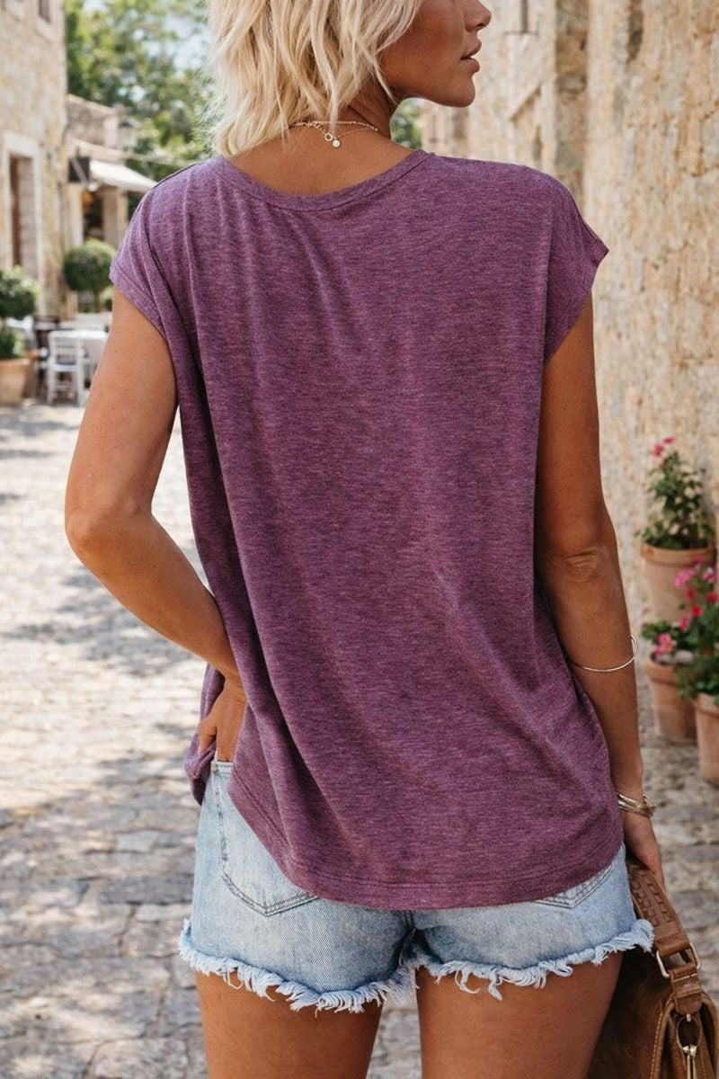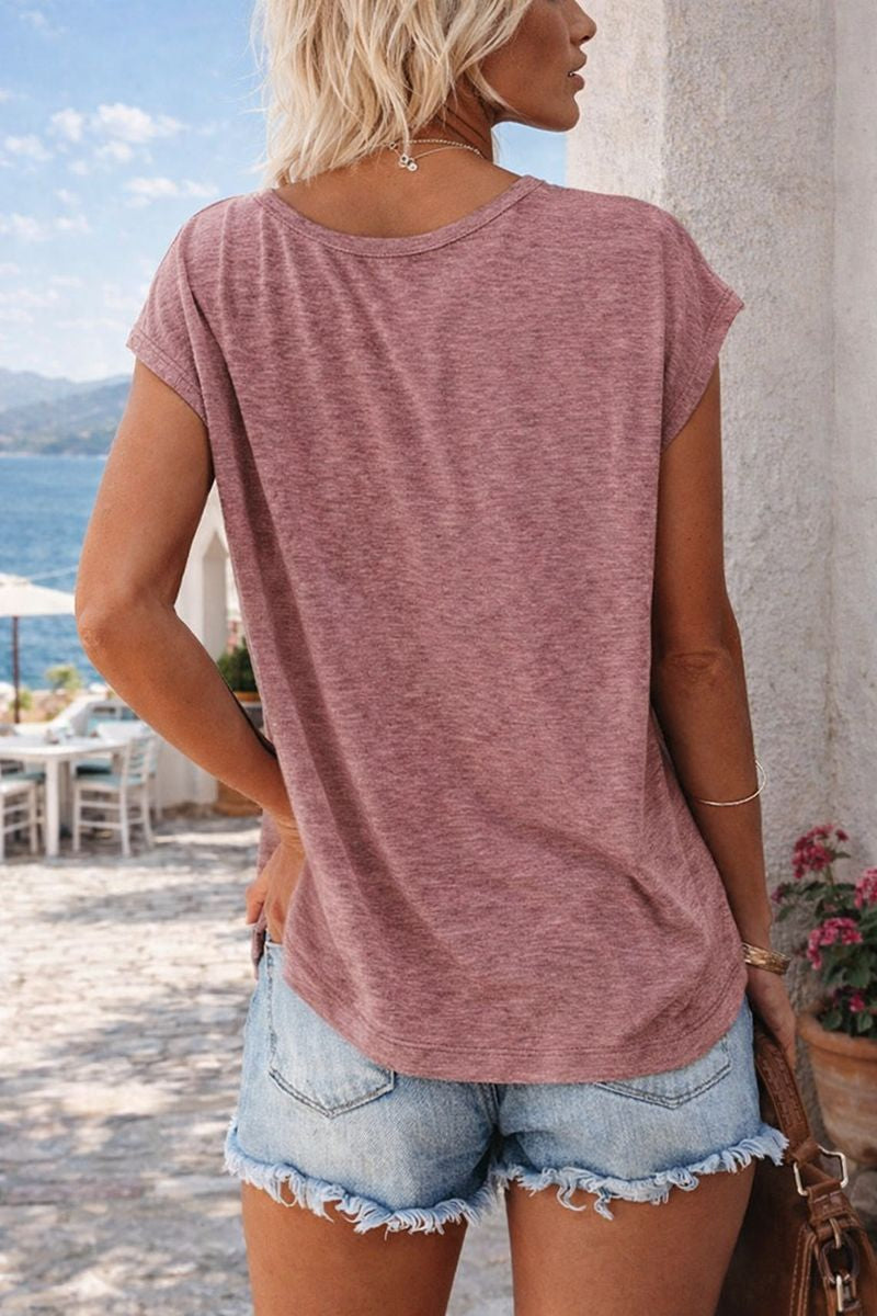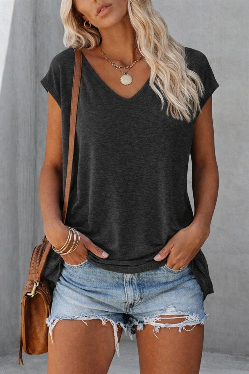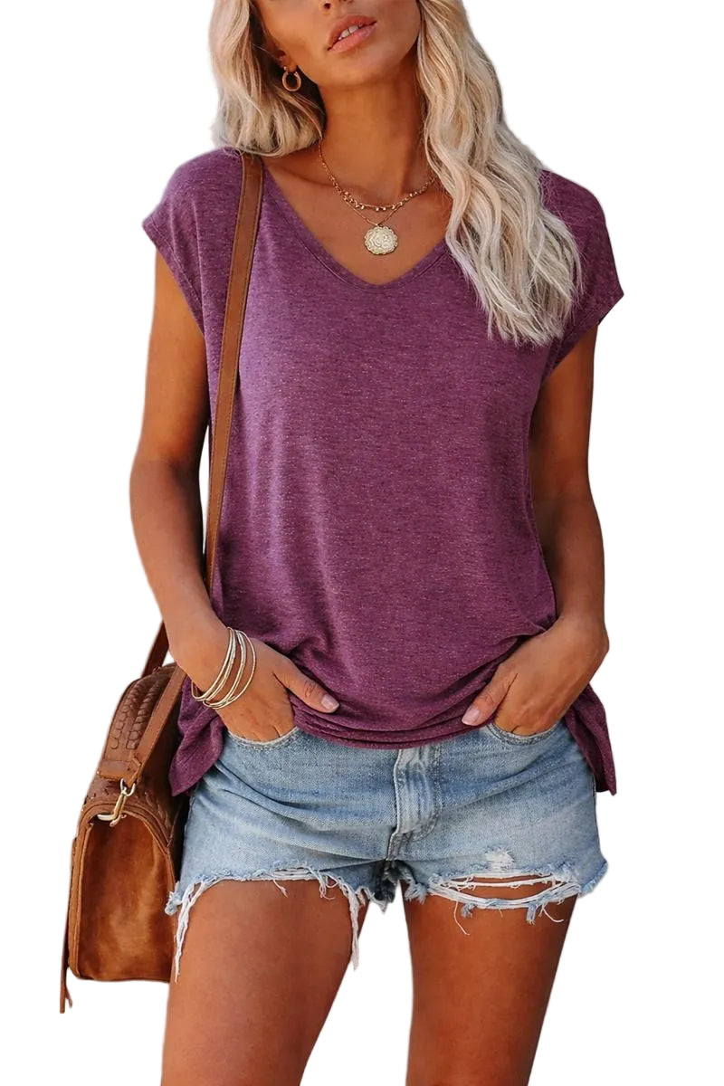 Damska Koszulka z dekoltem w serek i przewiewnym krojem. Prosty, nowoczesny krój, idealny na cieplejsze dni. Miękki dekolt w serek i luźny krój sprawiają, że jest to praktyczny element garderoby.