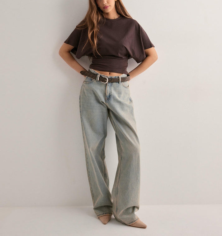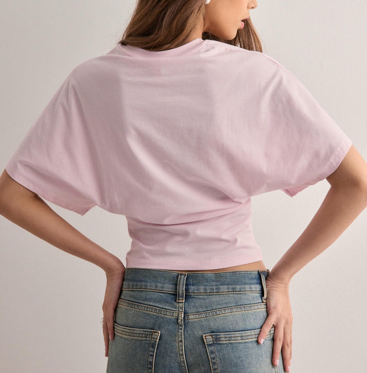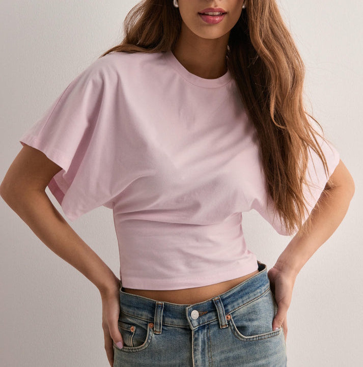 Damski Top Z Szerokimi Rękawami I Okrągłym Dekoltem
