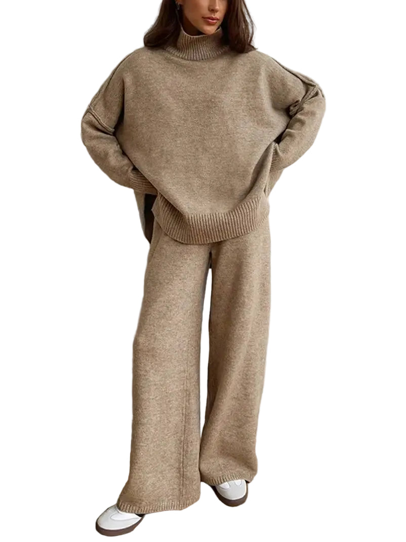 Damski Dzianinowy Komplet - Obszerny Golf i Szerokie Spodnie