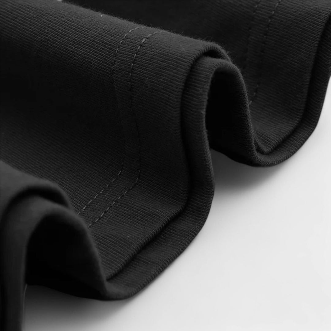 Ta oversize'owa koszulka w kolorze czarnym lub białym łączy w sobie luźny krój z całkowicie czystym, ponadczasowym designem bez widocznego logo. Prosty krój, obniżone szwy na ramionach i nieco dłuższe rękawy nadają obu wersjom minimalistyczny, nowoczesny wygląd.