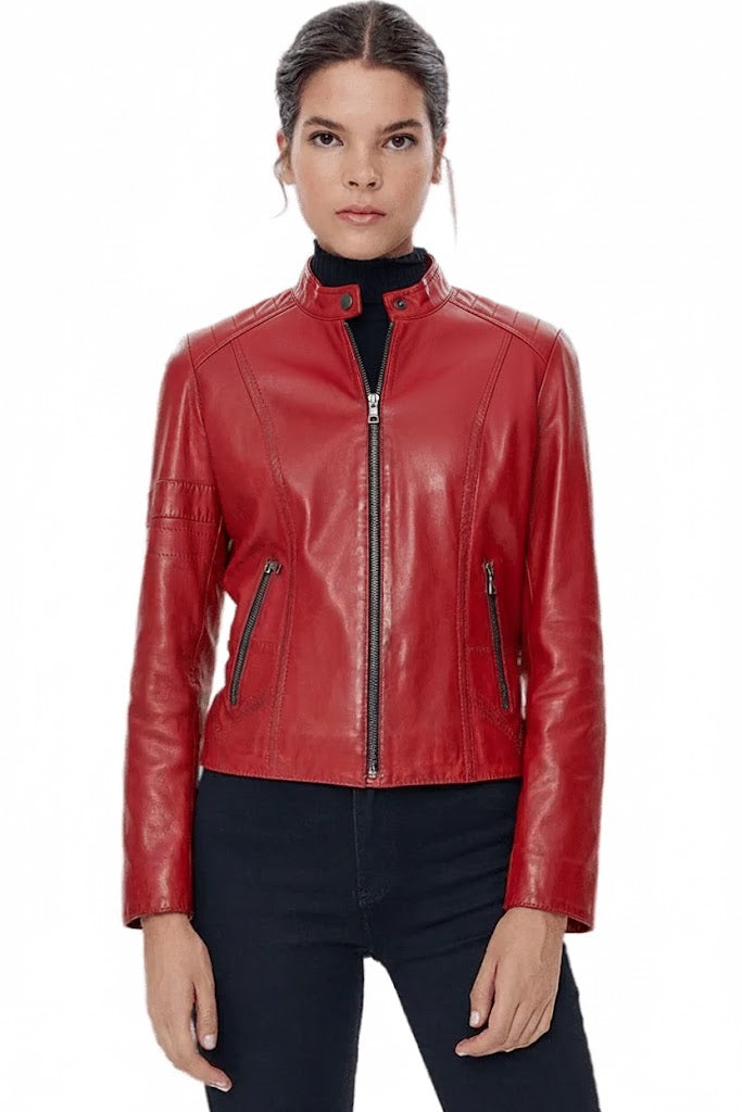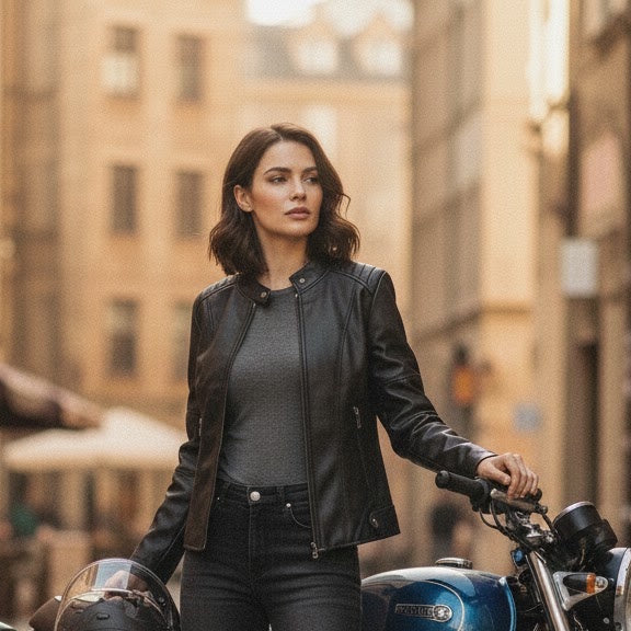 • Klasyczny styl biker: Minimalistyczny design z zamkiem błyskawicznym i subtelnymi detalami.
