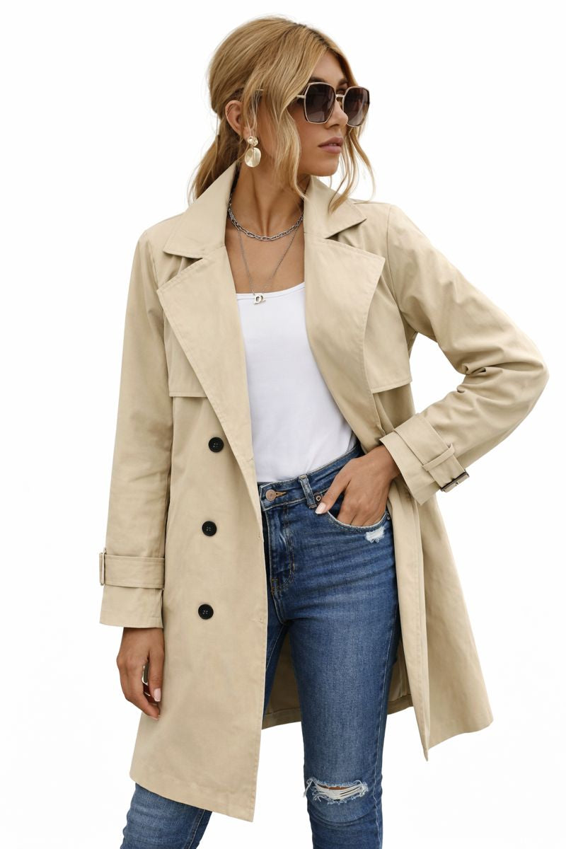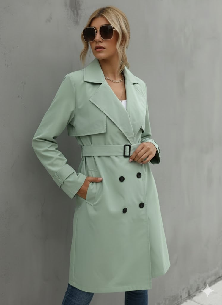 Damski Trencz z Podwójnym Zapięciem i Paskiem