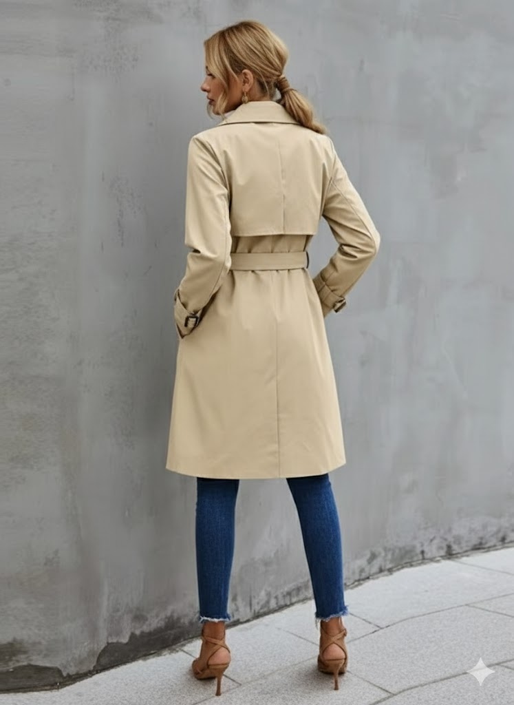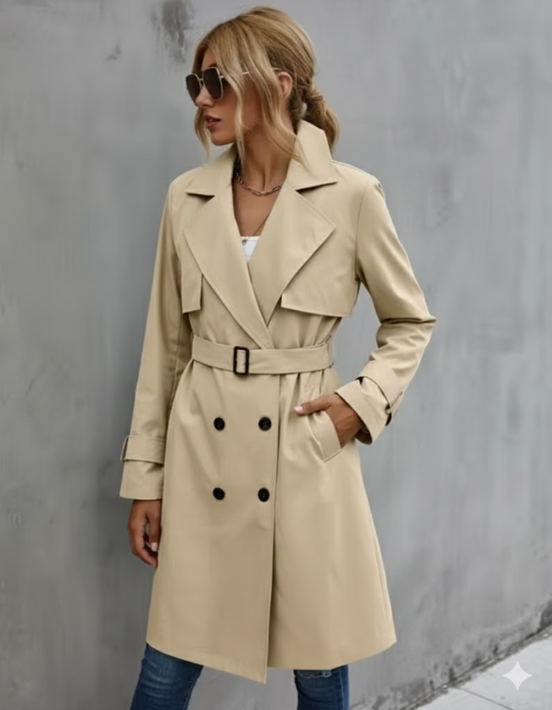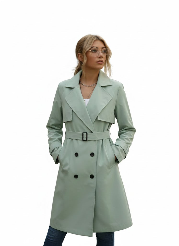Damski trencz z podwójnym zapięciem, idealny na różne okazje. Sylwetka i starannie dopracowane detale nadają mu wyjątkowy charakter.