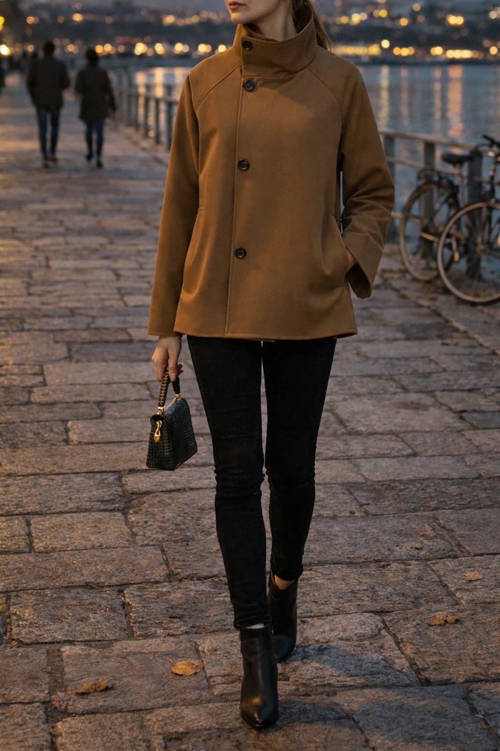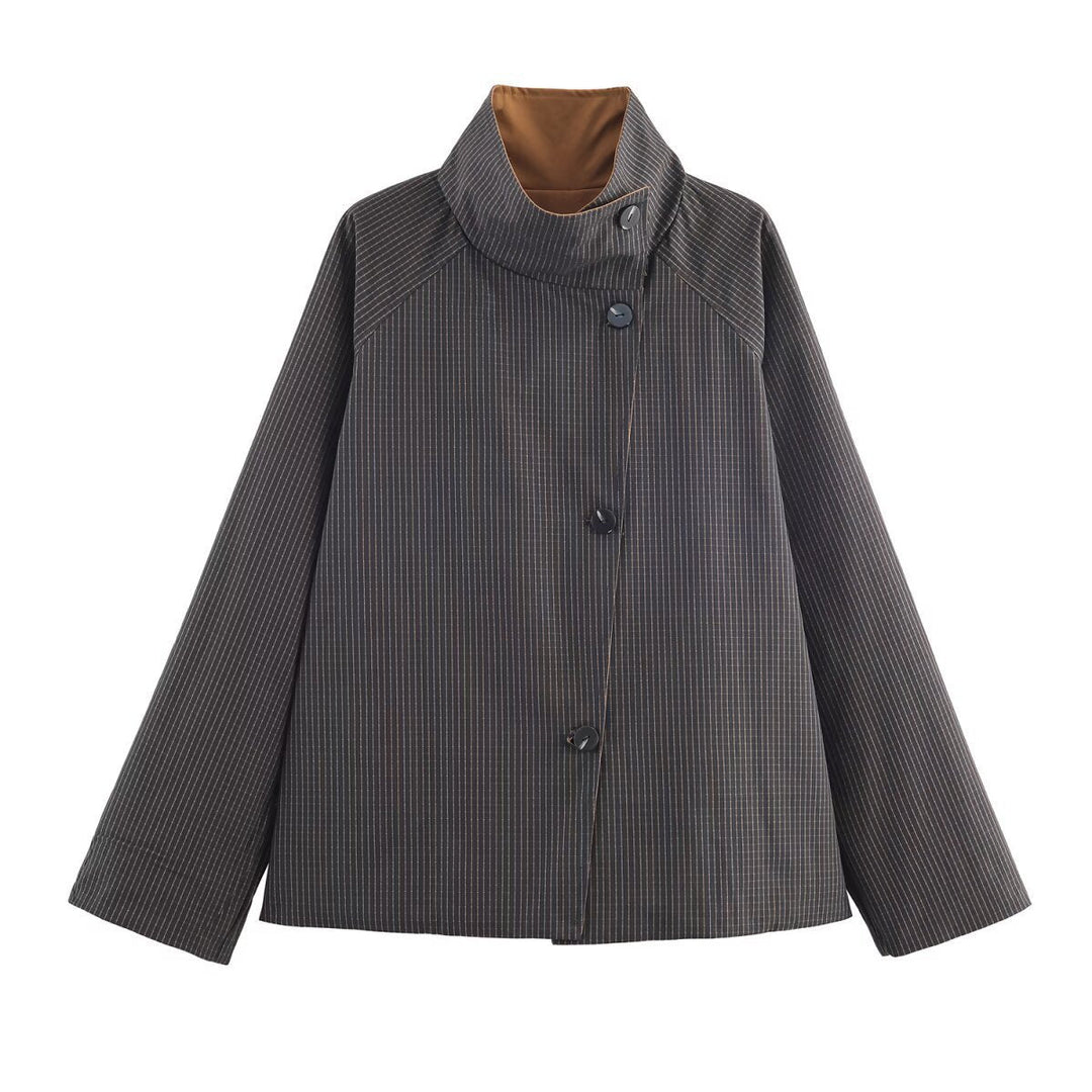 Kurtka Damska z Guzikami i Nowoczesnym Kołnierzem