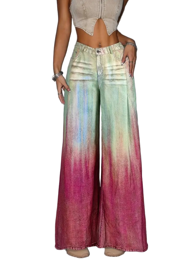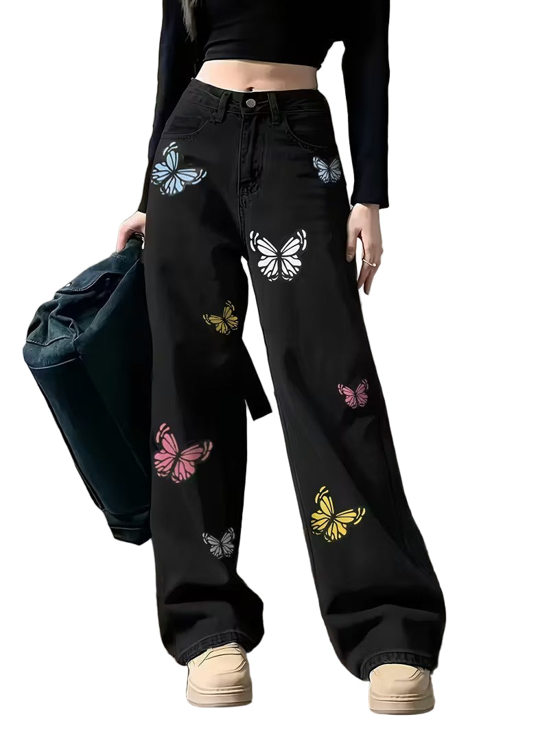 Damskie Spodnie o Szerokich Nogawkach w Motyle