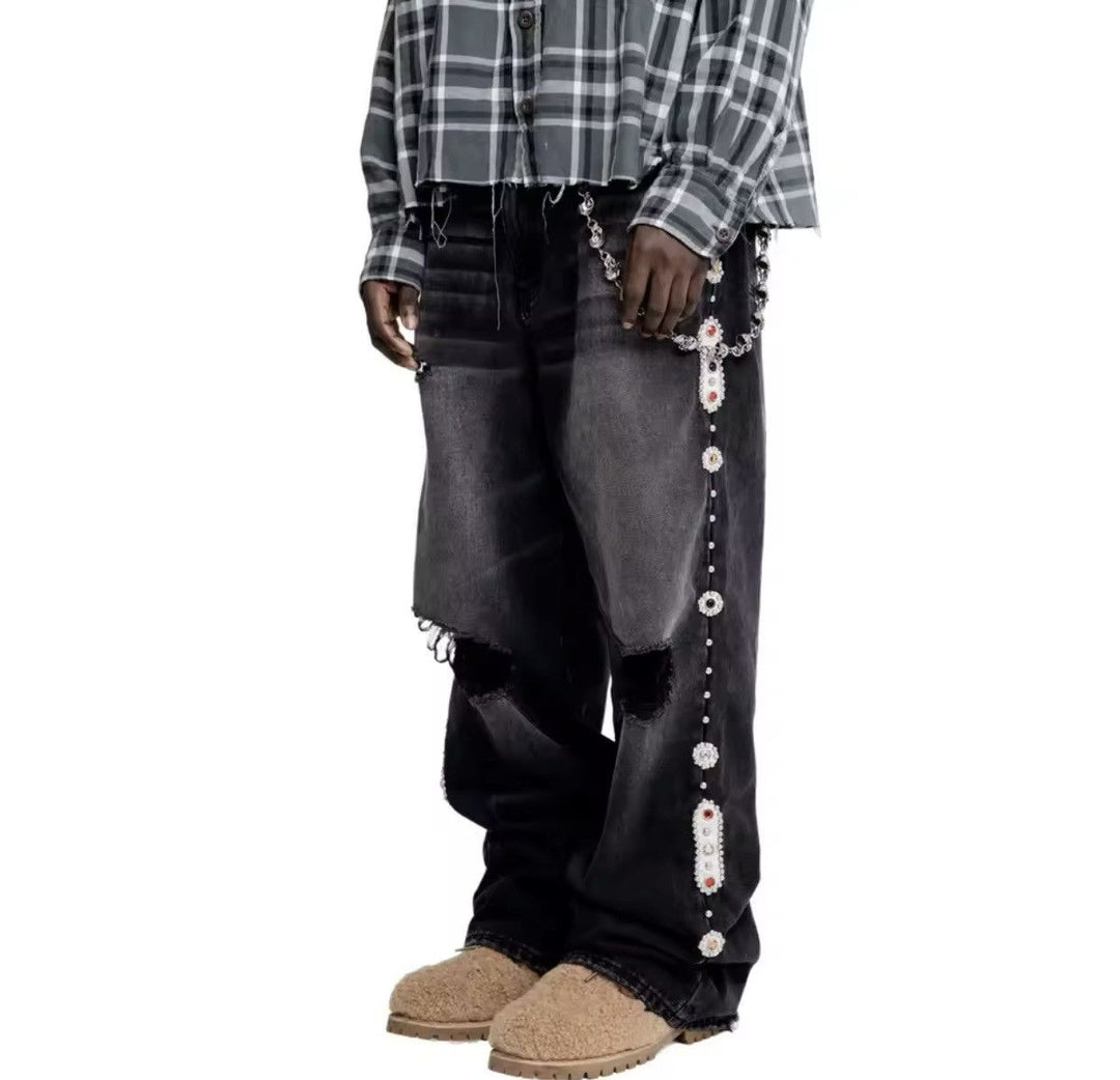 Męskie Spodnie Jeansowe Statement – Black Embellished Edition
