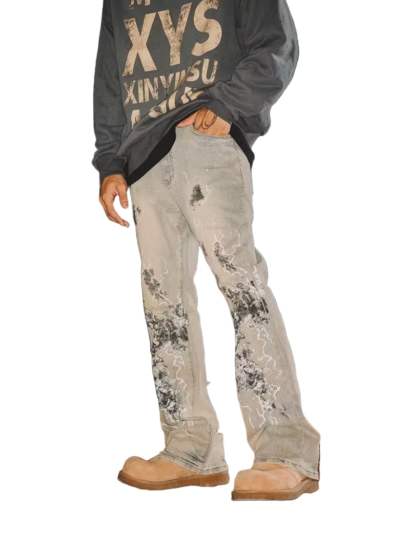 Męskie Spodnie Rozszerzane z Abstrakcyjnym Wzorem Graficznym