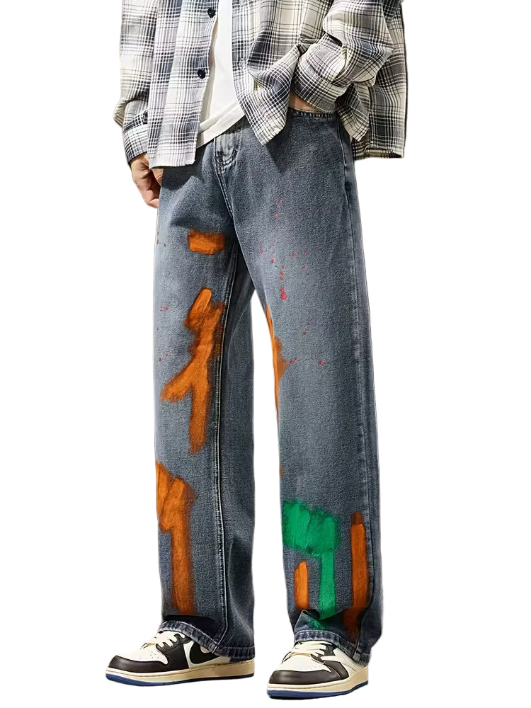 Męskie Spodnie o Prostym Kroju z Wzorem