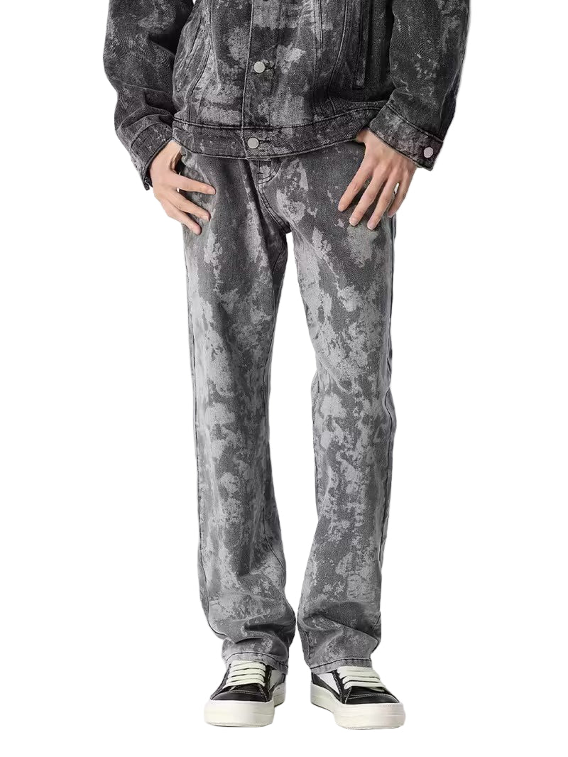 • Abstrakcyjny wzór: Wzór rozmieszczony na całej powierzchni spodni.